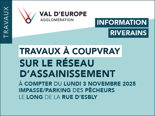 Val d’Europe Agglomération réalisera des travaux impasse / parking des pêcheurs situés le long de la rue d’Esbly à partir du lundi 3 novembre 2025.