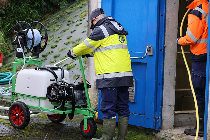 Avant le lavage, une vidange progressive est réalisée afin de limiter les pertes d’eau. Les équipes interviennent ensuite pendant une journée à l’intérieur de la cuve pour rincer les parois et le sol, appliquer un produit de nettoyage, procéder à un nouveau rinçage, désinfecter puis effectuer un dernier rinçage final.