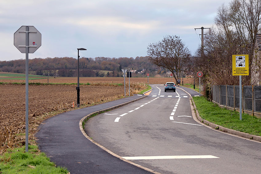 Pensée pour améliorer la sécurité de tous, cette requalification intègre notamment un tronçon de piste cyclable, désormais inscrit au Schéma Directeur des Itinéraires Cyclables (SDIC) de Val d’Europe Agglomération.