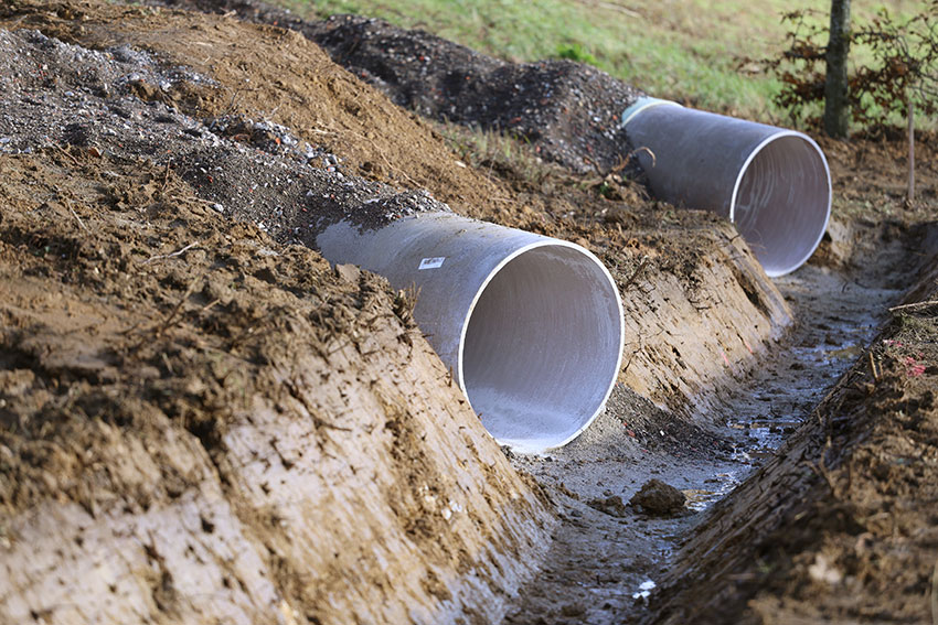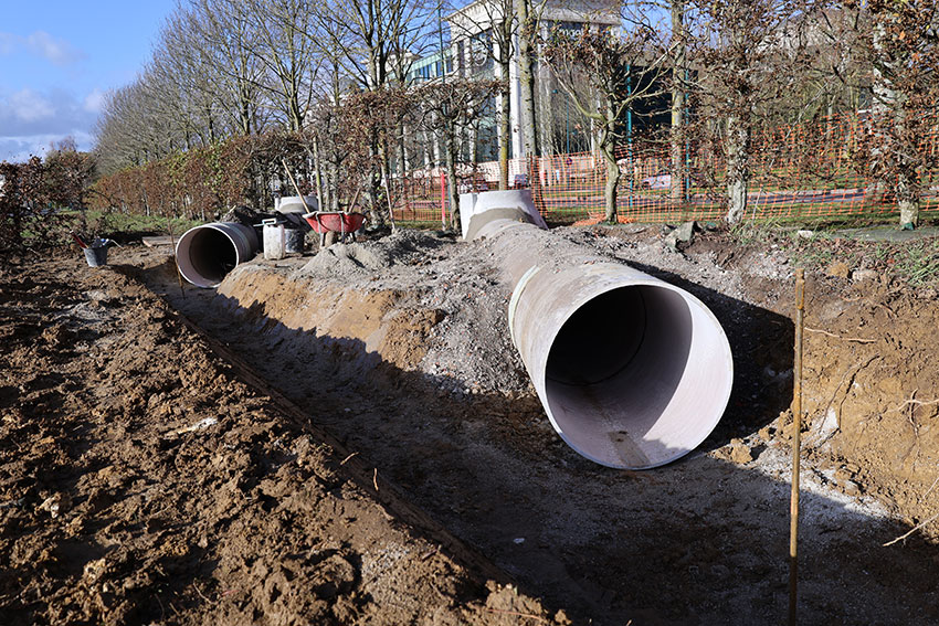 • La pose de deux canalisations qui viendront alimenter cette noue.